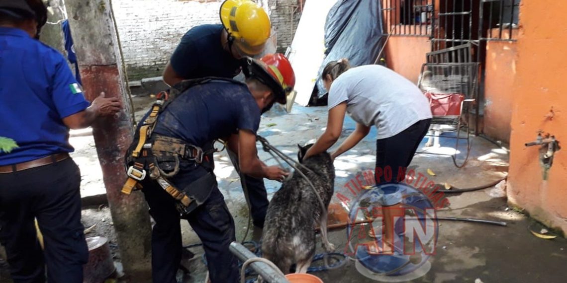 Tapachula, Chiapas. En una rápida acción del personal de Bomberos, lograron rescatar a un canino de la raza lobo, el cual había caído a un pozo artesiano.