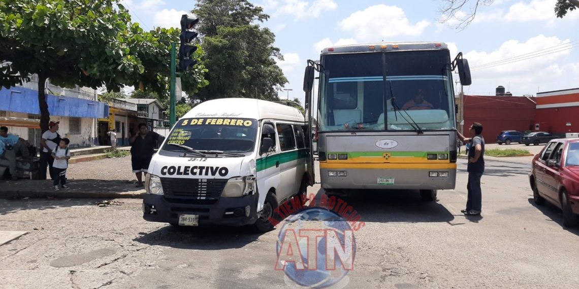 Tapachula, Chiapas. El conductor de una combi colectiva rebasó por la derecha sin precaución, ocasionando qué un autobús lo chocará cuando iba a dar vuelta a su derecha, afortunadamente nadie resultó lesionado, solo daños materiales de consideración.