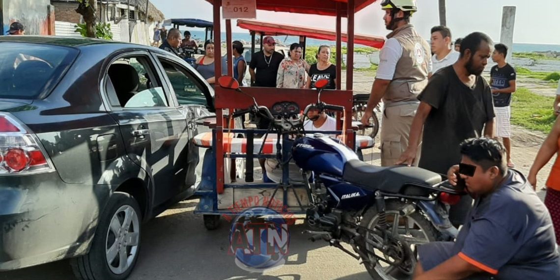 TAPACHULA, CHIAPAS. – Una persona lesionada y daños materiales por varios miles de pesos, dejó como saldo un accidente en la calle principal de Puerto Madero, frente a la iglesia católica de San Benito.