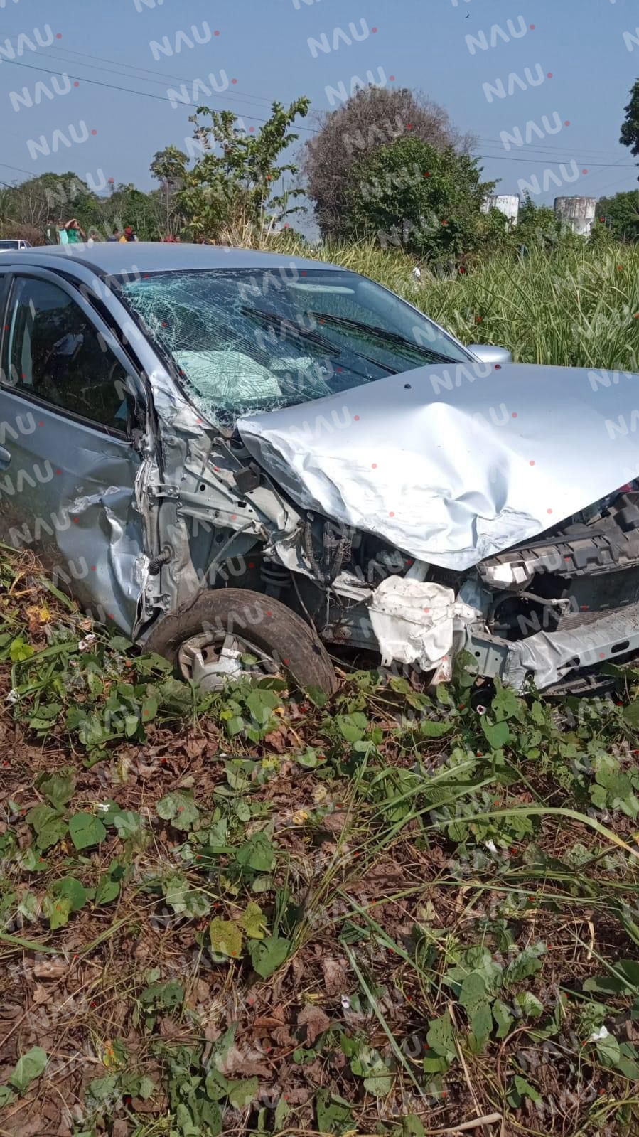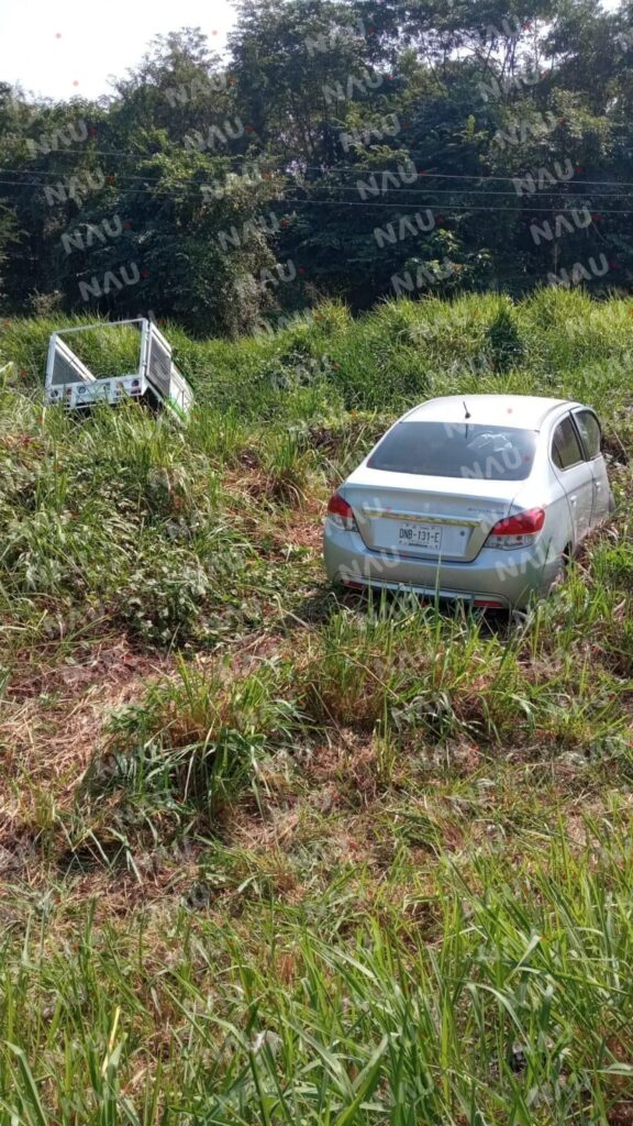 En el lugar localizaron una camioneta NP-300 con redilas verde con blanco y cabina de color blanco y un vehículo Dodge Acttitud color plata, al momento del fuerte impacto ambos vehículos quedaron fuera de la carretera.