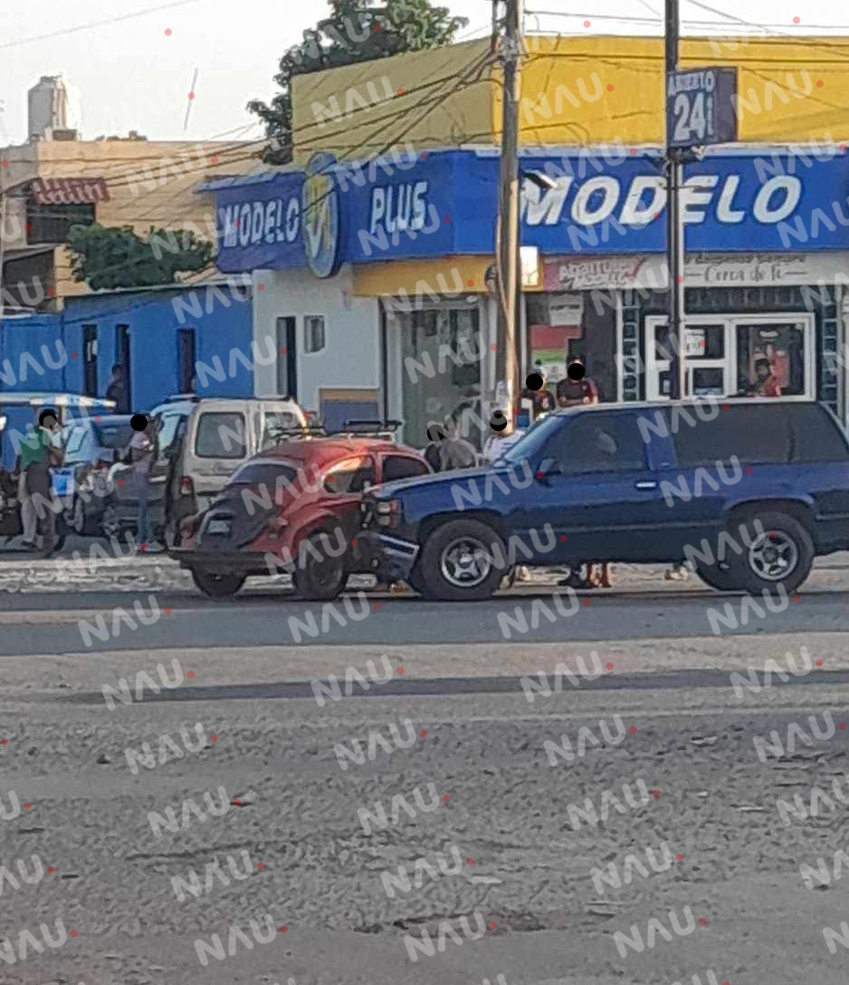 Dos vehículos chocaron en la avenida en el bulevar Santa Fe, del fraccionamiento Vida Mejor, del municipio de Tapachula.