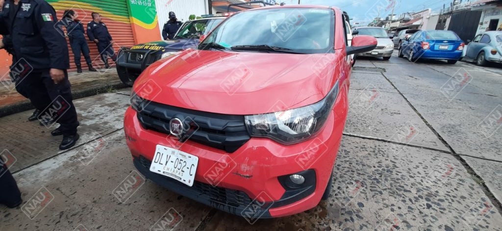 Tapachula, Chiapas. El conductor de un automóvil Fiat mobi, terminó impactado contra la parte trasera de una patrulla de la secretaría de seguridad pública y protección ciudadana municipal.
