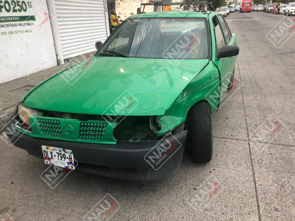 Colisión entre taxi y automóvil particular provoca caos vial en el centro de Tapachula