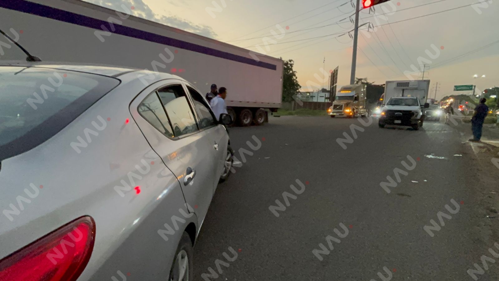 El incidente fue reportado al Centro de Emergencias, indicando que ambas unidades permanecían sobre la carretera tras el choque. Al llegar, autoridades encontraron al Versa color gris detenido por la luz roja del semáforo, cuando fue impactado por el camión, cuyo conductor presuntamente invadió el carril contrario.