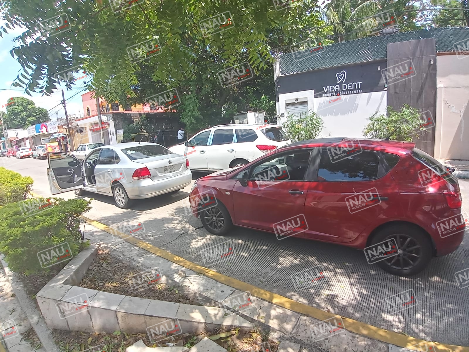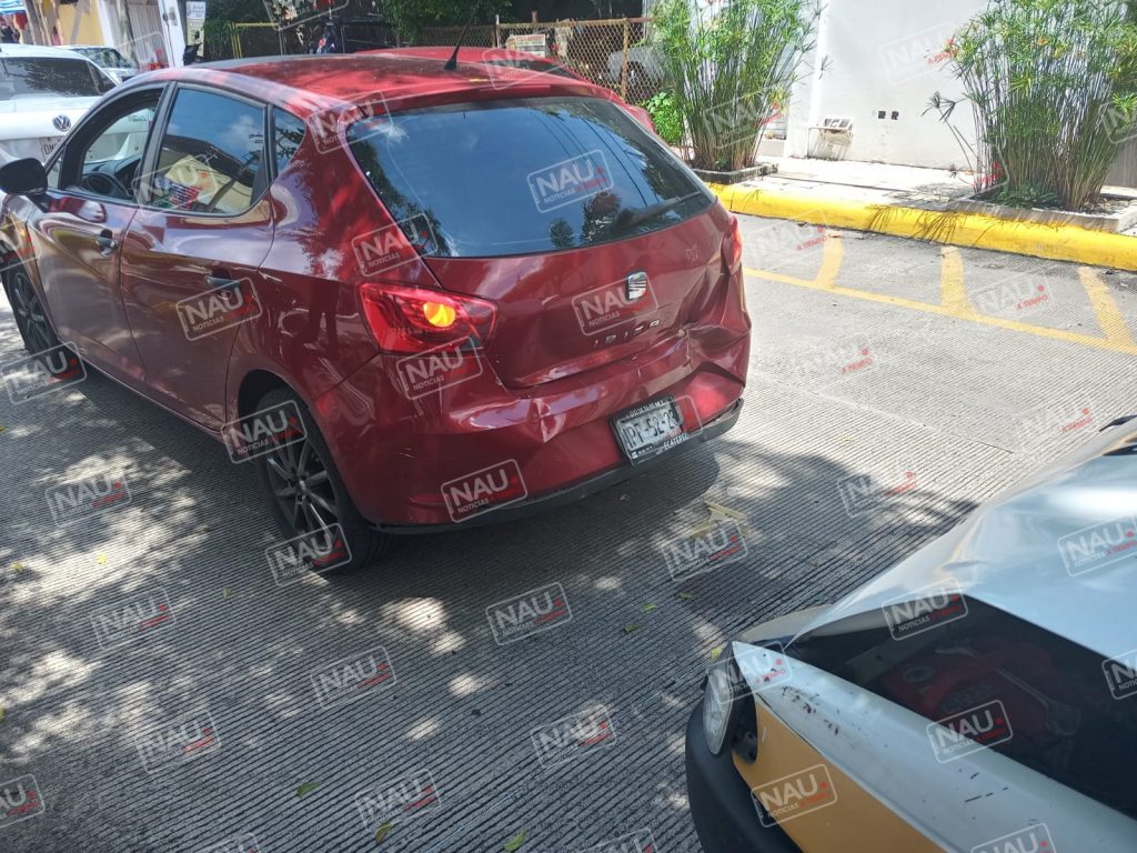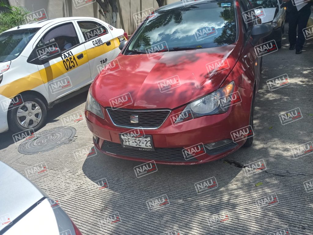 El caso que el conductor del taxi terminó impactándose contra la parte trasera de un automóvil Seat de color guinda, este mismo vehículo chocó contra la parte trasera de un automóvil Volkswagen Vento de color plata, en el lugar nadie resultó lesionado.