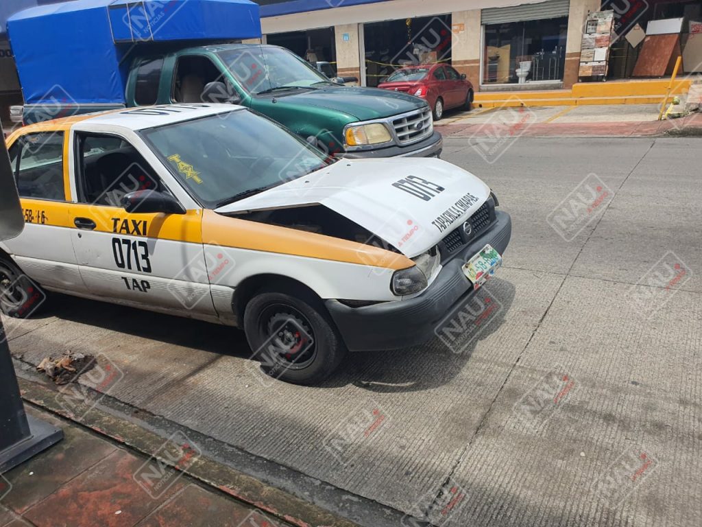 Antes de llegar al semáforo de la central poniente, se puso en rojo, detuvo su marcha y fue impactado por alcance por el taxi con número económico 0 7 1 3, de Tapachula del sitio libre.