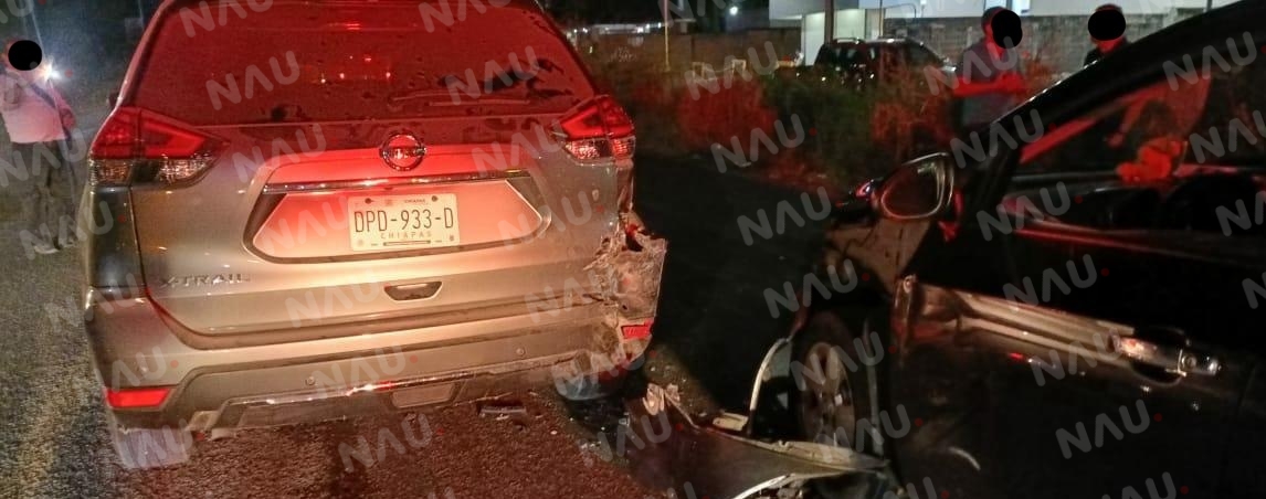 TAPACHULA, CHIAPAS. Daños materiales por más de 60 mil pesos, dejo como saldo un choque por alcance sobre el libramiento sur Poniente, a la altura de la entrada al fraccionamiento Buenos Aires.