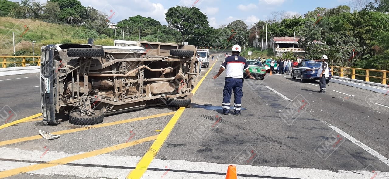 Al lugar acudieron paramédicos de la Cruz Roja Mexicana, quienes le brindaron los primeros auxilios a cuatro personas que venían en el taxi, los cuales no presentaban lesiones de gravedad, posteriormente el jefe de paramédicos junto el personal al mando, realizaron los trabajos de abanderar la zona del accidente, controlar el derrame de combustible de la camioneta Nissan Estaquita, que estaba volcado de su costado derecho.