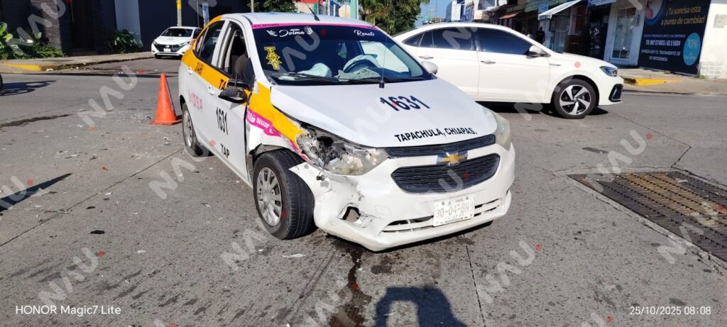 El percance ocurrió cerca de las 8:00 horas, en el cruce de la Novena Avenida Sur y Segunda Calle Oriente, cuando un taxi con número económico 1631 fue impactado por un automóvil Nissan Sentra color gris. Según versiones de testigos, el taxi avanzó tras el cambio de luz verde del semáforo, mientras que el conductor del Sentra habría ignorado la luz roja, provocando el impacto.