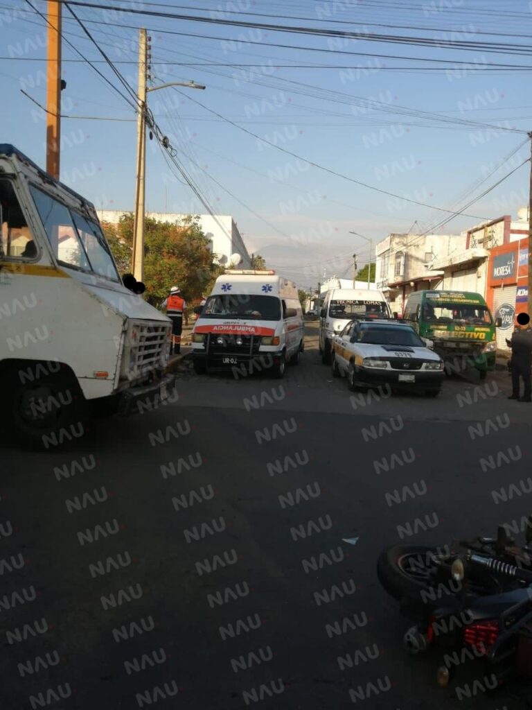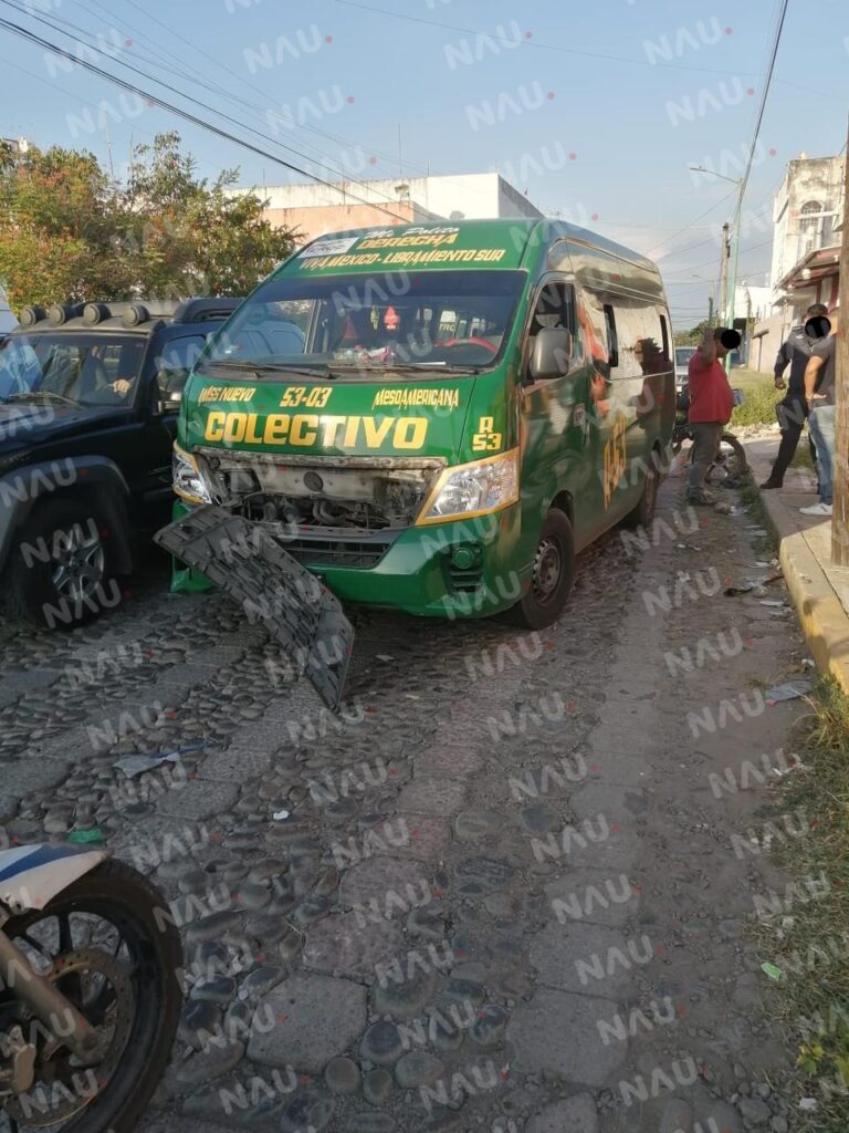El primer percance se registró sobre la cuarta avenida norte, esquina con la 17 calle Poniente, entre una combi de pasaje de la ruta Viva México – Libramiento – Centro y una motocicleta Italika, conducida por Magaly N de 22 años de edad.