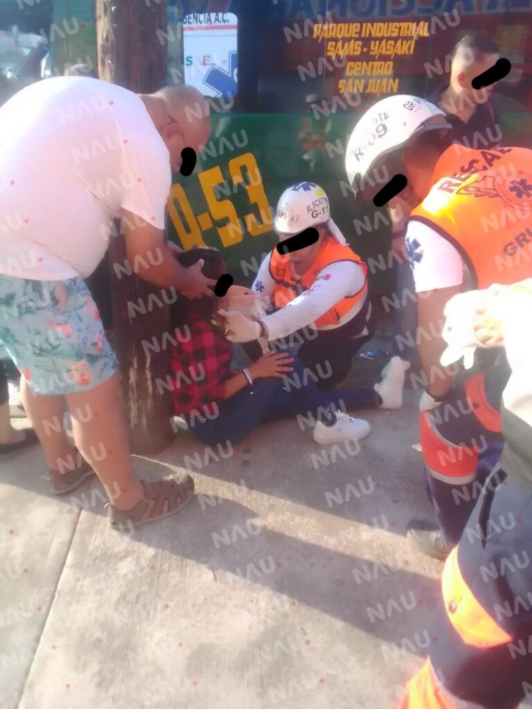 La joven mujer queda tirada en el pavimento, por lo que fue atendida por paramédicos de servicios auxiliares de emergencia, quienes la trasladaron a un hospital regional Manuel Velasco Suárez de Tapachula.