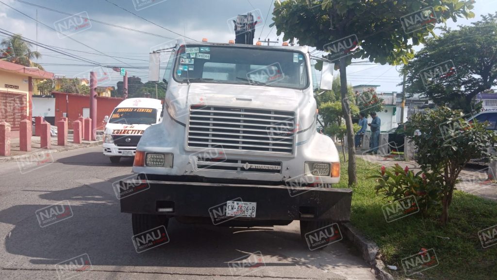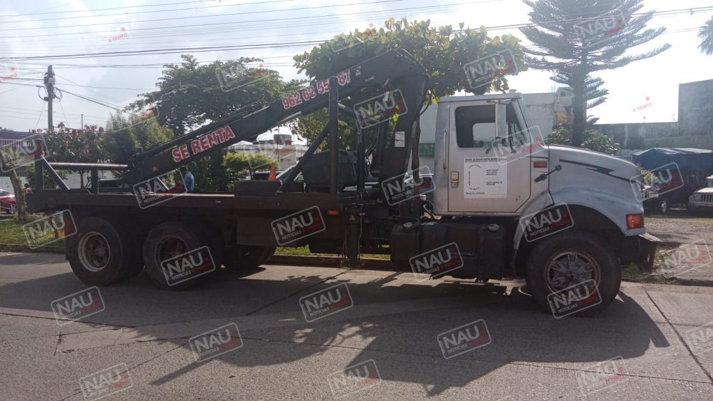 Tapachula, Chiapas. El descuido del conductor de una grúa, ocasionó un accidente sobre la 19 calle Oriente, entre central y 2a avenida Norte.