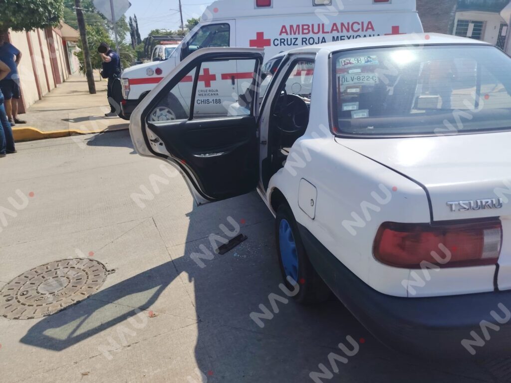 Tapachula, Chiapas; 27 de abril de 2026.— La falta de precaución al volante volvió a generar un accidente en una de las vialidades concurridas de la ciudad, luego de que la conductora de un automóvil presuntamente no respetara la señal de alto, provocando un choque que dejó como saldo dos mujeres lesionadas y daños materiales de consideración.