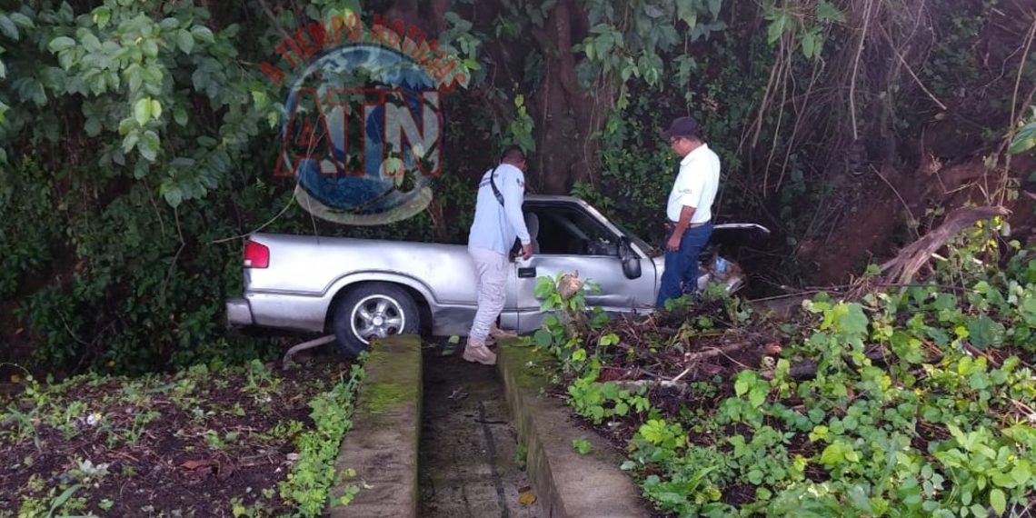 El conductor de una camioneta F150, tipo Pick-Up, color gris, sin placas de circulación, perdió el control de la unidad y se salió de la cinta asfáltica, hasta incrustarse contra el árbol.