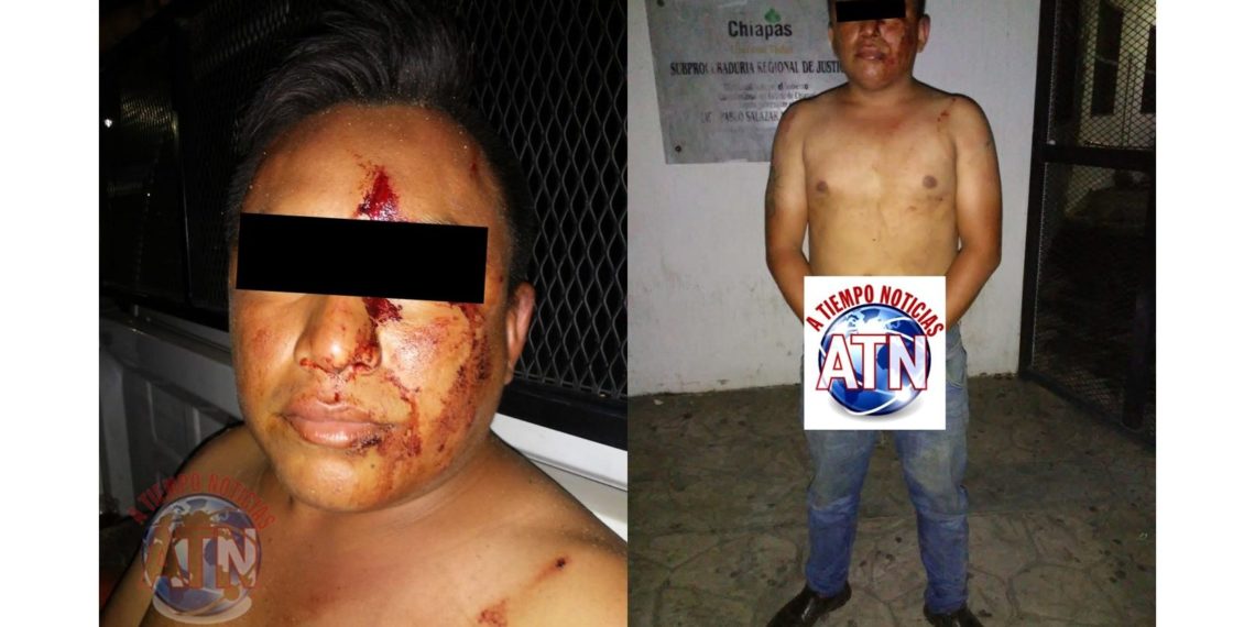 TAPACHULA, CHIAPAS. – Un sujeto que fue golpeado por un grupo de personas que lo detuvieron, quedo a disposición de las autoridades por el delito de robo de un celular.
