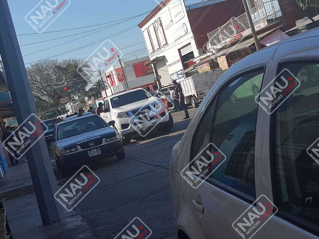 Choque entre dos vehículos deja solo daños materiales en el centro de Tapachula