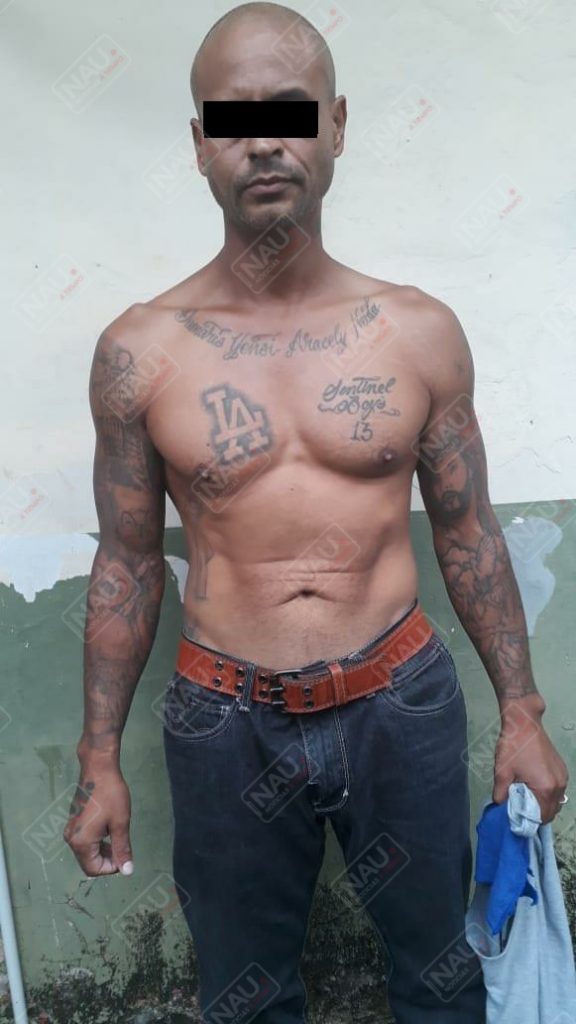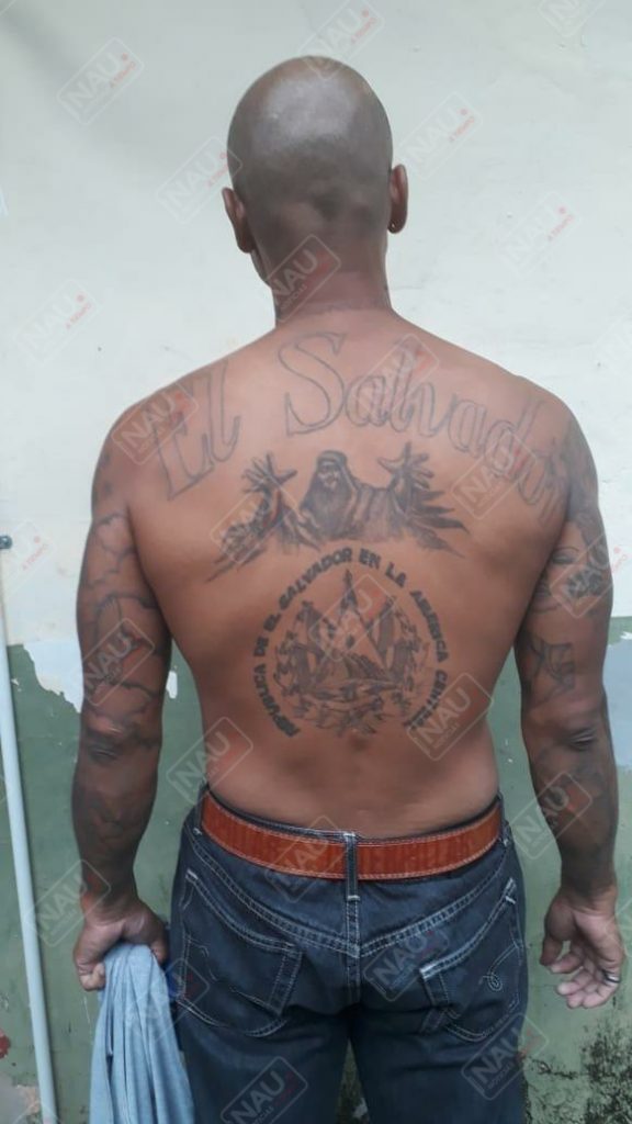 Al aplicarle una revisión corporal, el detenido presentaba tatuajes alusivos a la banda Mara Salvatrucha, mismo que le fue informado que sería puesto a disposición del fiscal de atención al migrante, por el delito contra la salud y pandillerismo.