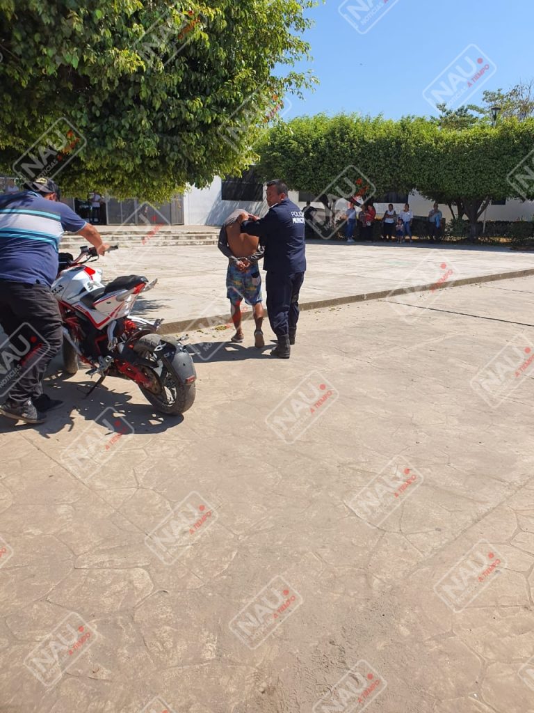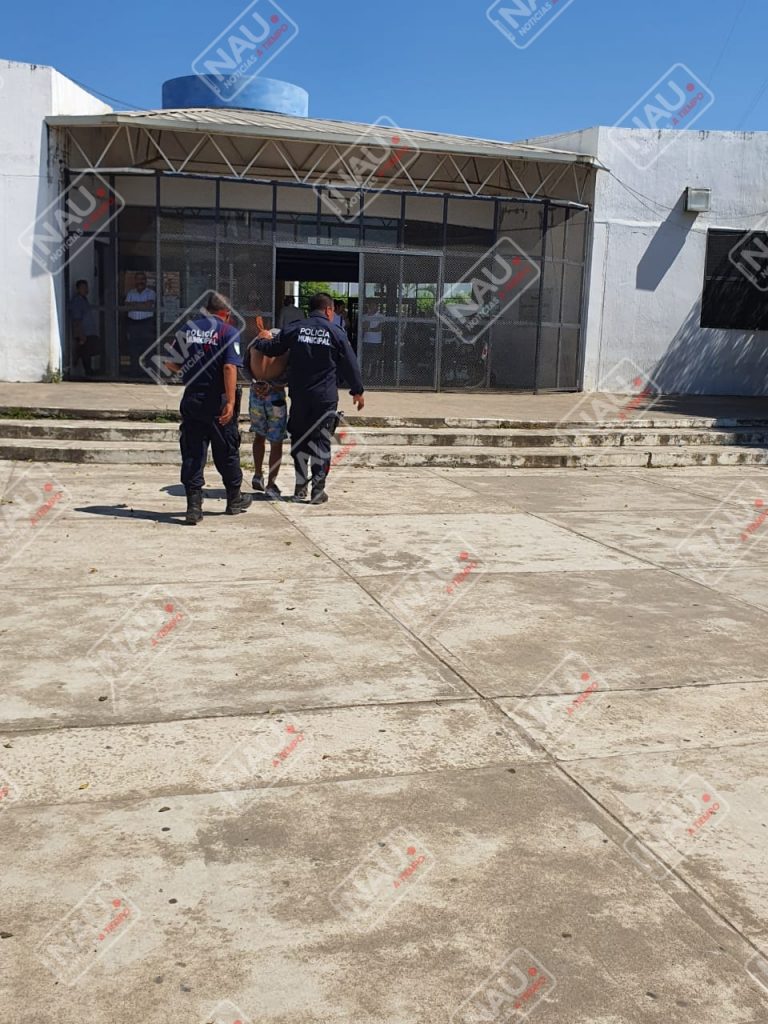 En el momento que se encontraba sometido por elementos de la policía municipal, llegó una persona y golpeó en la espalda al acusado, quien también fue detenido y llevado a la base de la policía municipal por alterar el orden.