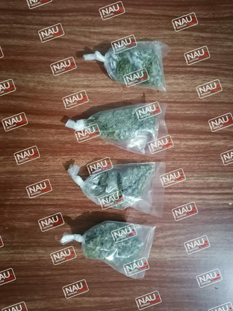En la bolsa del pantalón del lado izquierdo le fue localizado cuatro bolsitas de nylon transparente interior contenía hierba verde con las características de la marihuana.