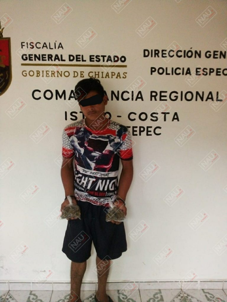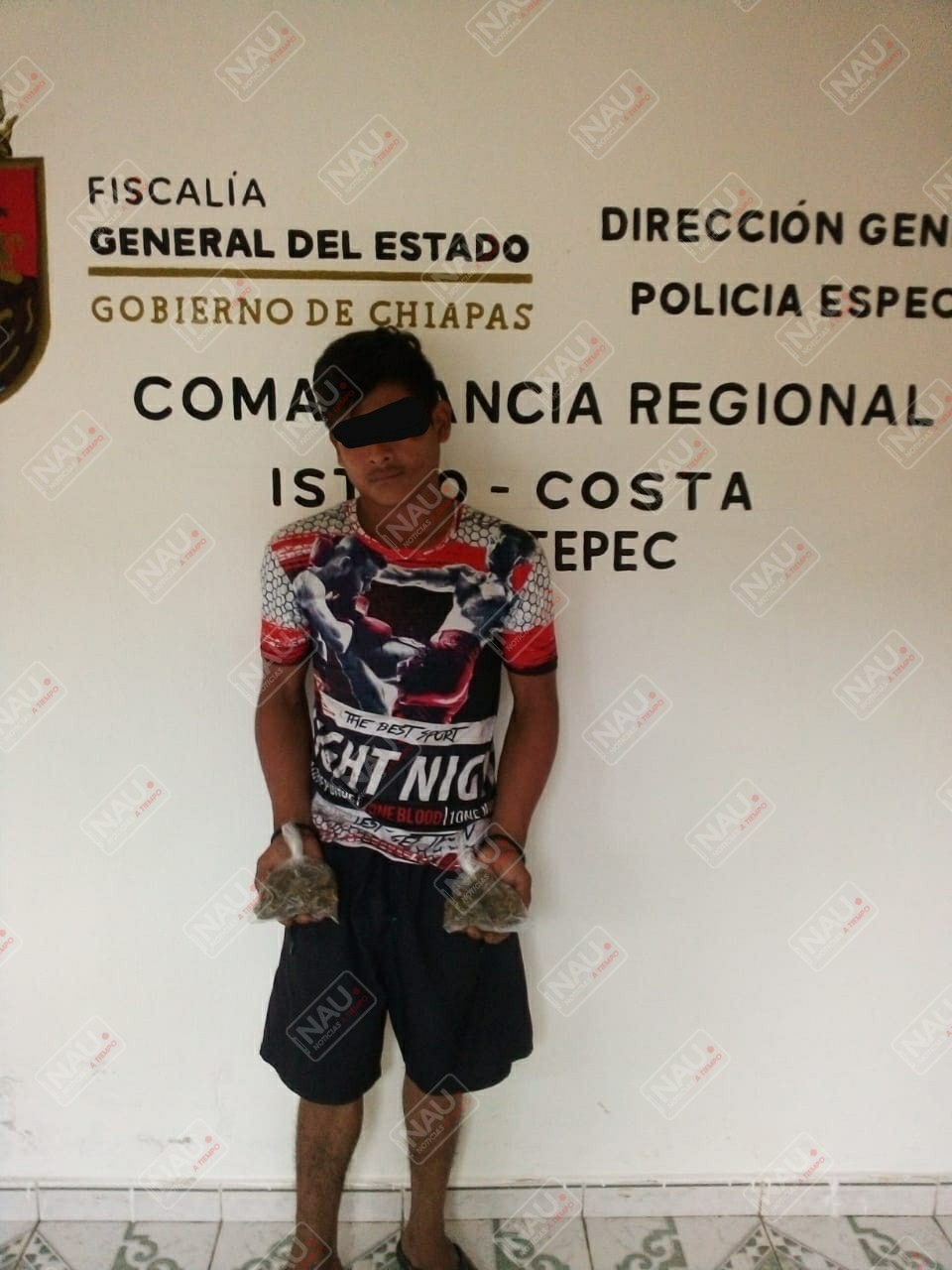 Mapastepec.- Detienen a una persona del sexo masculino, quien intentó burlar a los elementos policiacos cuando realizaban patrullaje de seguridad y vigilancia en la zona comercial del municipio.