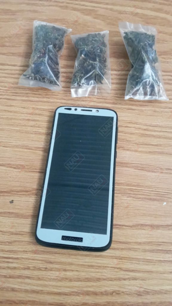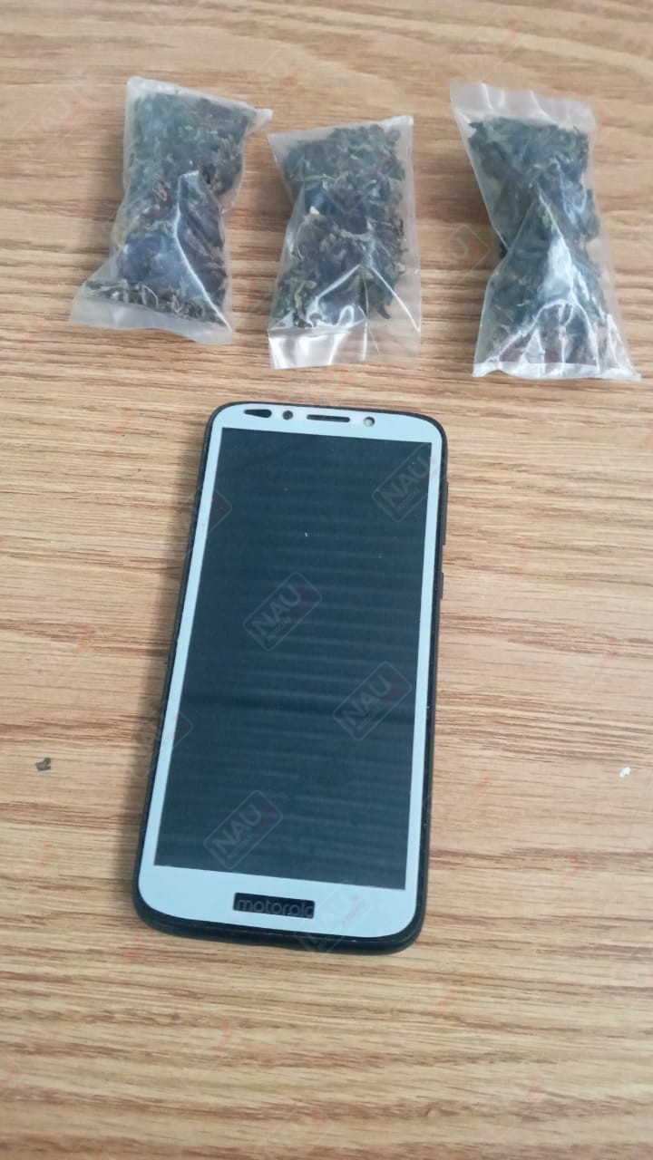 En el momento de ser detenido, se le aplicó una revisión, se la encontró el teléfono celular robado, asimismo 3 bolsitas de marihuana, por ello fue detenido y trasladado a la fiscalía de migrantes para ser puesto a disposición por el delito de robo a casa habitación.