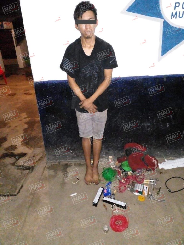 Los uniformados detuvieron a un sujeto de nombre José N., que llevaba una mochila con diversas pertenencias de la institución educativa, mismo que fue presentado ante un fiscal del Ministerio Público, por el delito de robo y lo que le resulte.