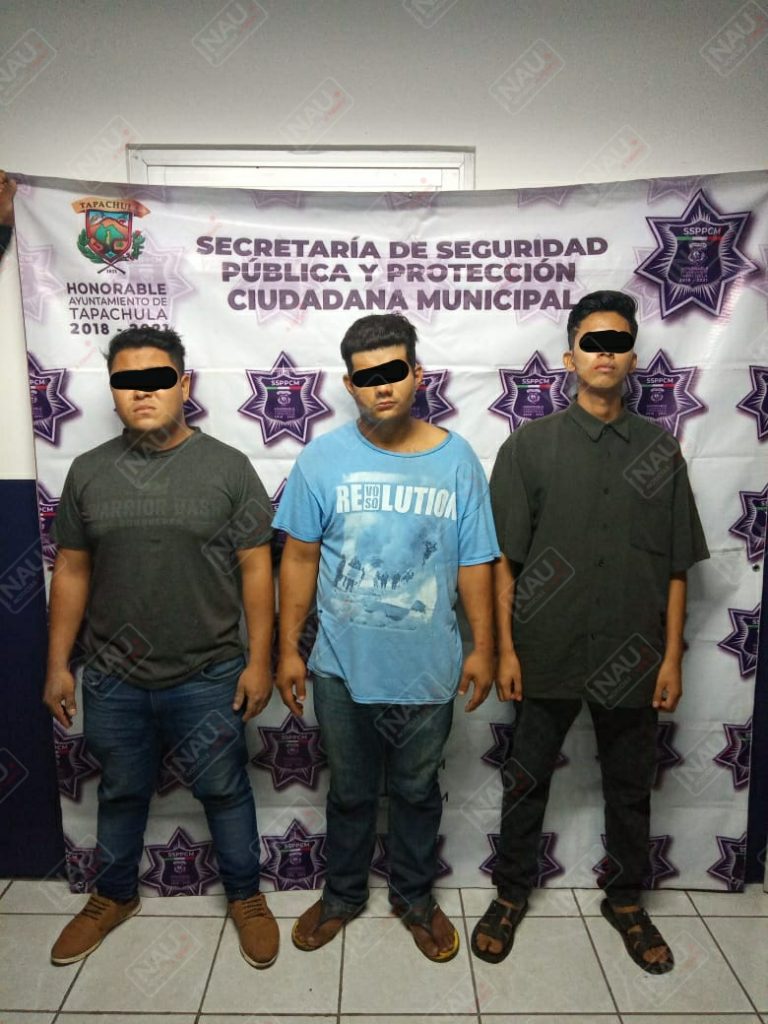Tapachula, Chiapas. Tres personas fueron detenidas por elementos de la Policía municipal, a quienes les encontraron marihuana y dos pistolas de salva, los hechos ocurridos en el fraccionamiento Universitario de Tapachula.