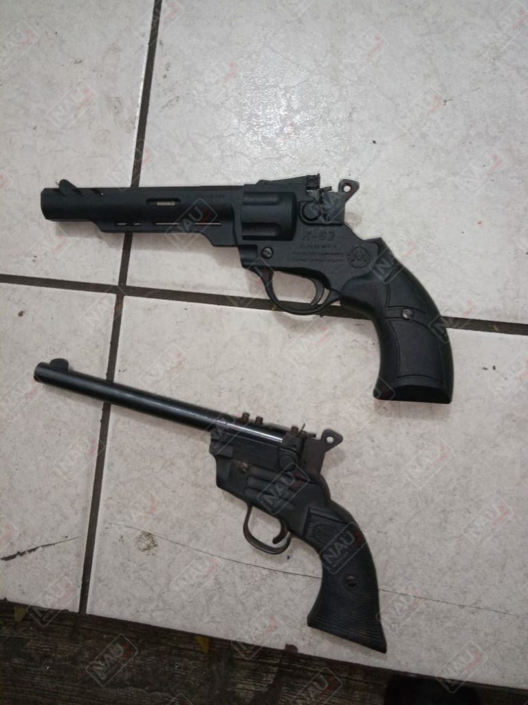Asimismo aseguraron a Mariano Antonio de 20 años de edad, mexicano, con domicilio en Progreso 1, se le encontró 4 bolsitas de marihuana, y Alejandro Santos de 25 años de edad, con domicilio en la Colonia 5 de febrero, le encontraron un arma tipo revólver deportiva de color negro y 4 bolsitas de hierba de marihuana.