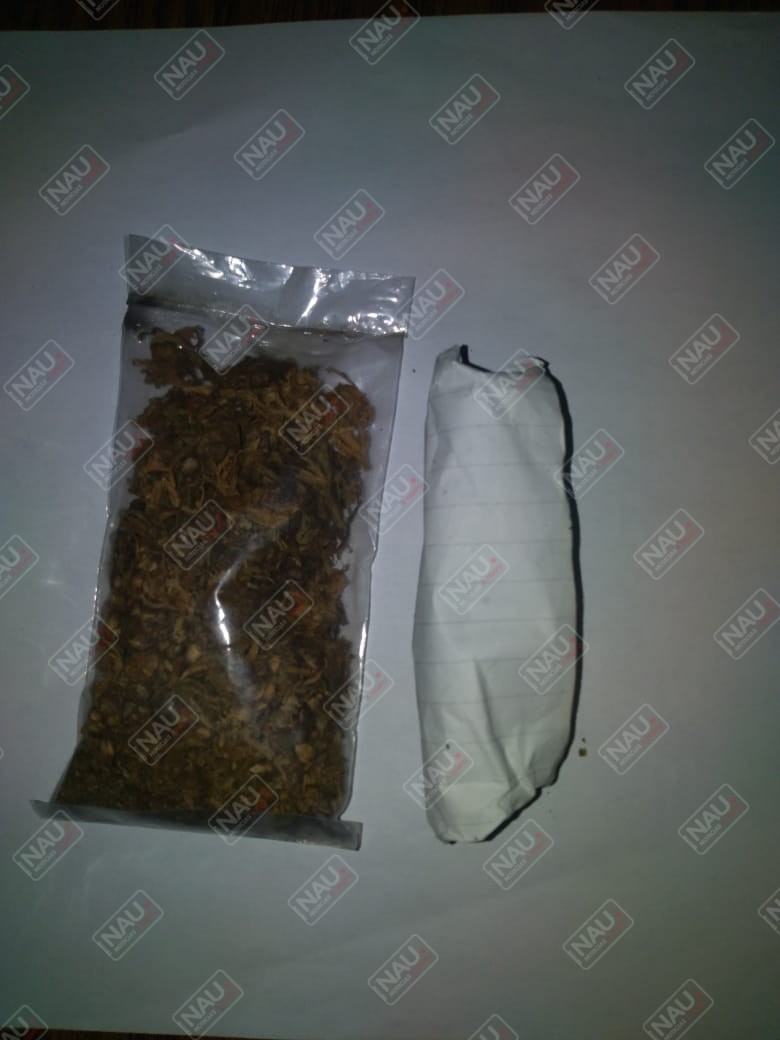 Sobre la calle principal, los elementos localizaron a una persona quien presenta tatuajes en el pecho alusivos a la banda barrio 18, a quién le encontraron una bolsita y un envoltorio de papel periódico que contenía hierba verde con las características de la marihuana.