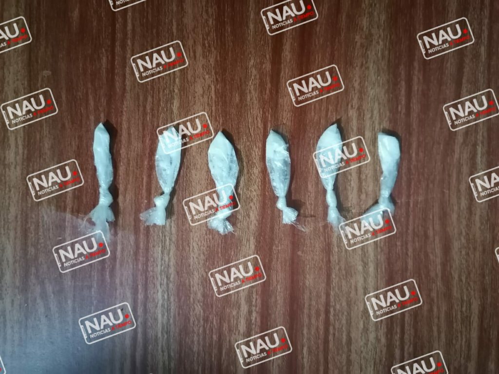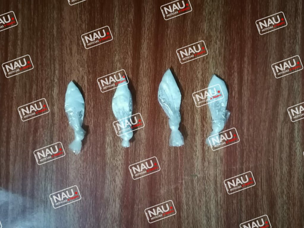 Al aplicarles una revisión se les encontraron 4 bolsitas de nylon transparente con polvo blanco con las características de la cocaína a cada uno.
