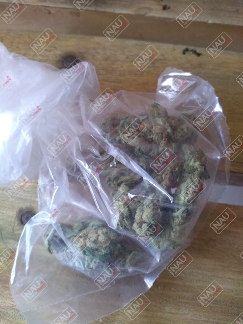 Al momento de realizarles una inspección de persona, se les encontró dentro de sus ropas, una bolsita de nailon transparente la cual contenía en su interior yerba verde con las características propias de la marihuana.