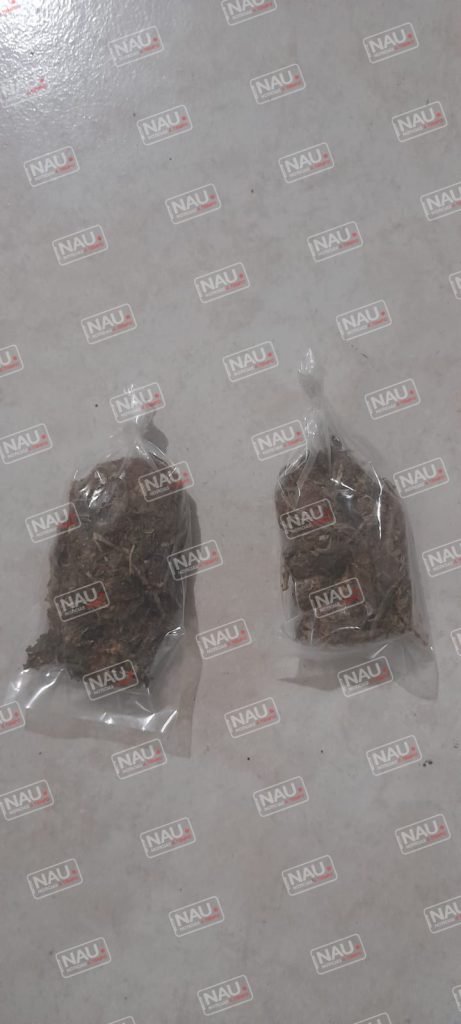 Al momento de implementar le una revisión corporal a José Efraín N. de 23 años de edad, se lo encontró dos bolsitas de color transparente en su interior contiene hierba seca con características de la marihuana.