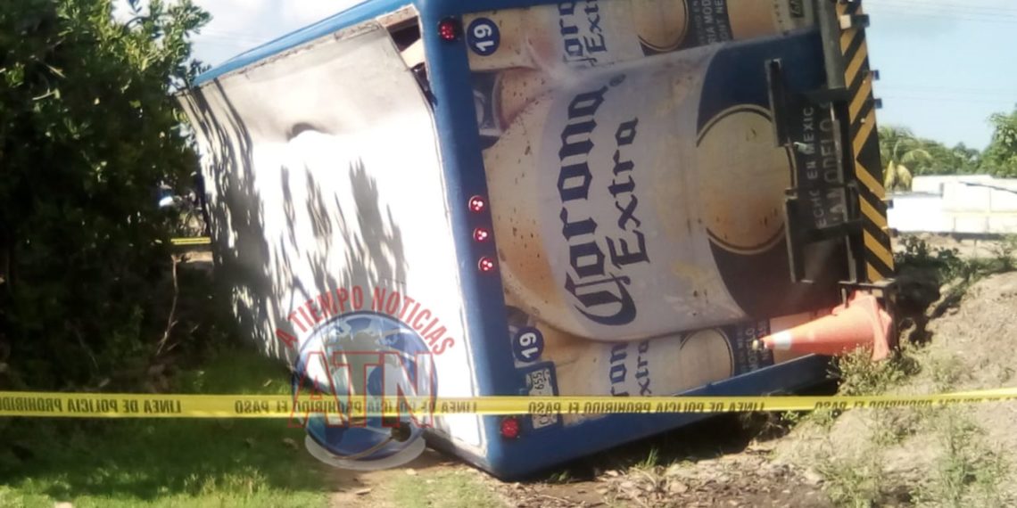 SUCHIATE, CHIAPAS. – Dos empleados de una empresa cervecera resultaron con lesiones al volcarse el camión repartidor, sobre la carretera Ejido Cuauhtémoc – Ciudad Hidalgo.