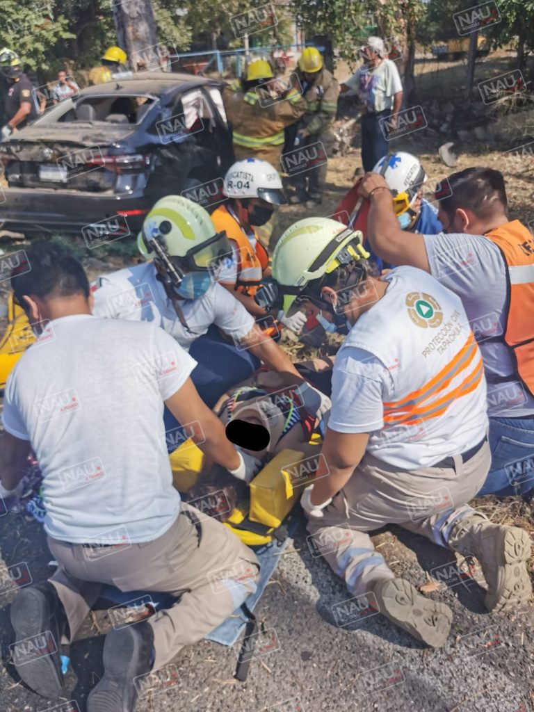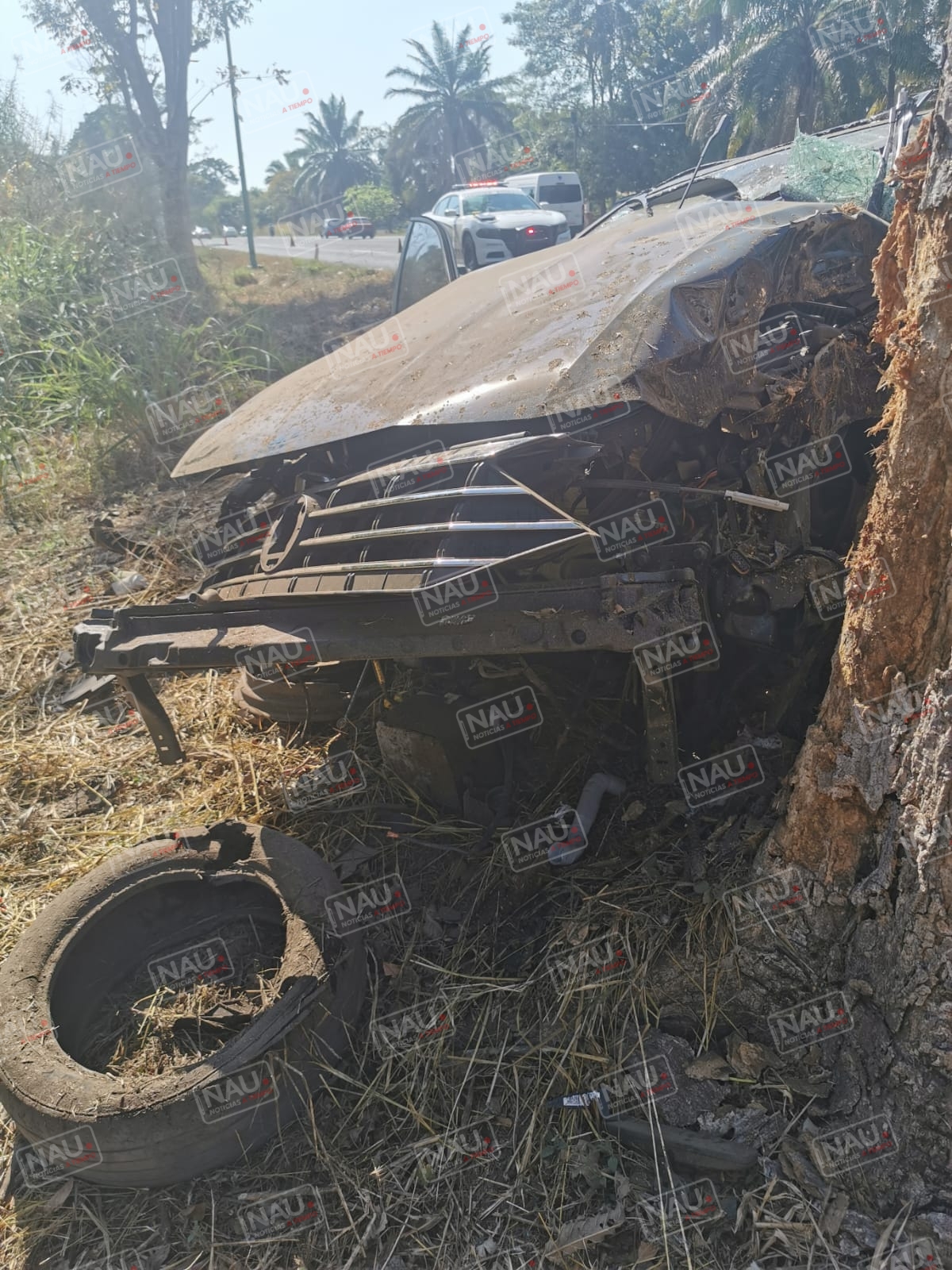 Tapachula, Chiapas. El exceso de velocidad y la falta de precaución, dejó como saldo la volcadura de un vehículo que terminó estrellado contra un árbol sobre el tramo carretero Puerto Madero – Tapachula, antes de llegar al hospital ciudad salud.