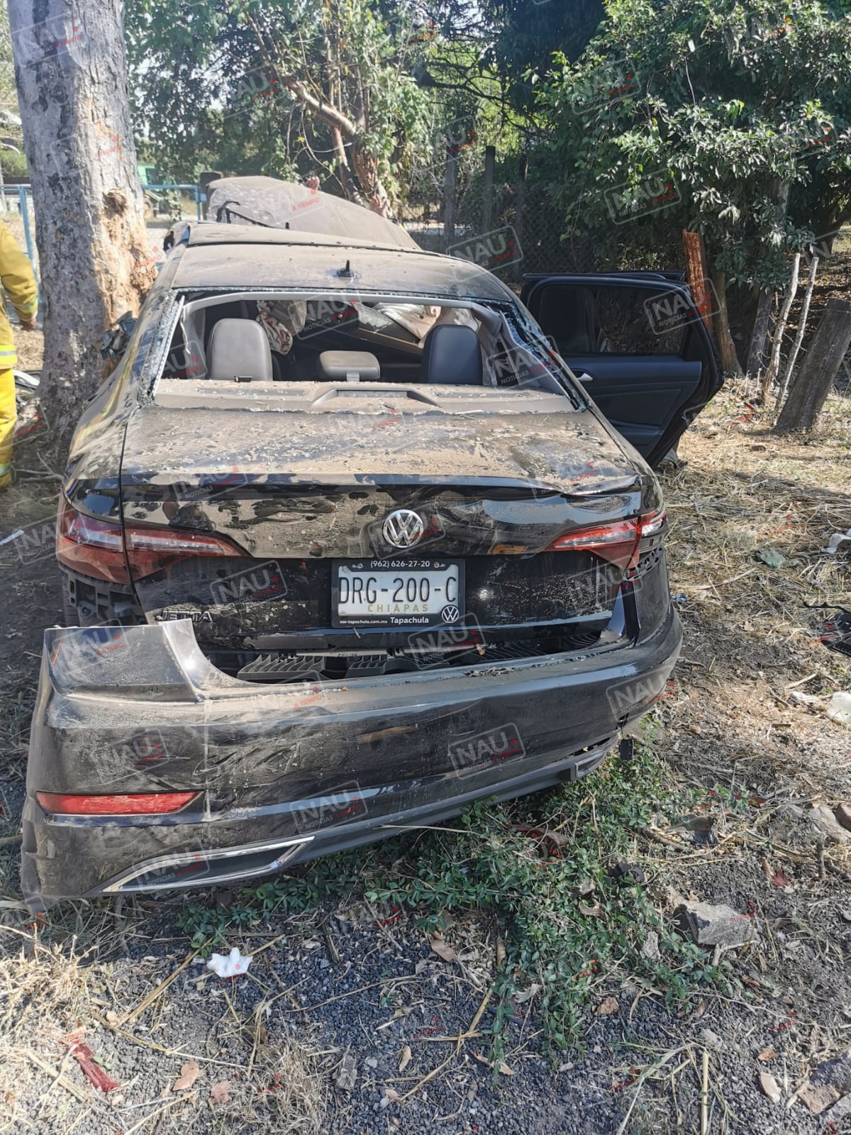De acuerdo a las autoridades, el percance se registró alrededor de la 1:40 de la tarde, en el momento que el conductor de un vehículo Jetta Volkswagen de color negro, con placas del estado de Chiapas, conducido por Francisco Gerardo N. de 35 años de edad, quién era acompañado por Elcira N. de 33 añod, se desplazaba de Puerto Madero a Tapachula.