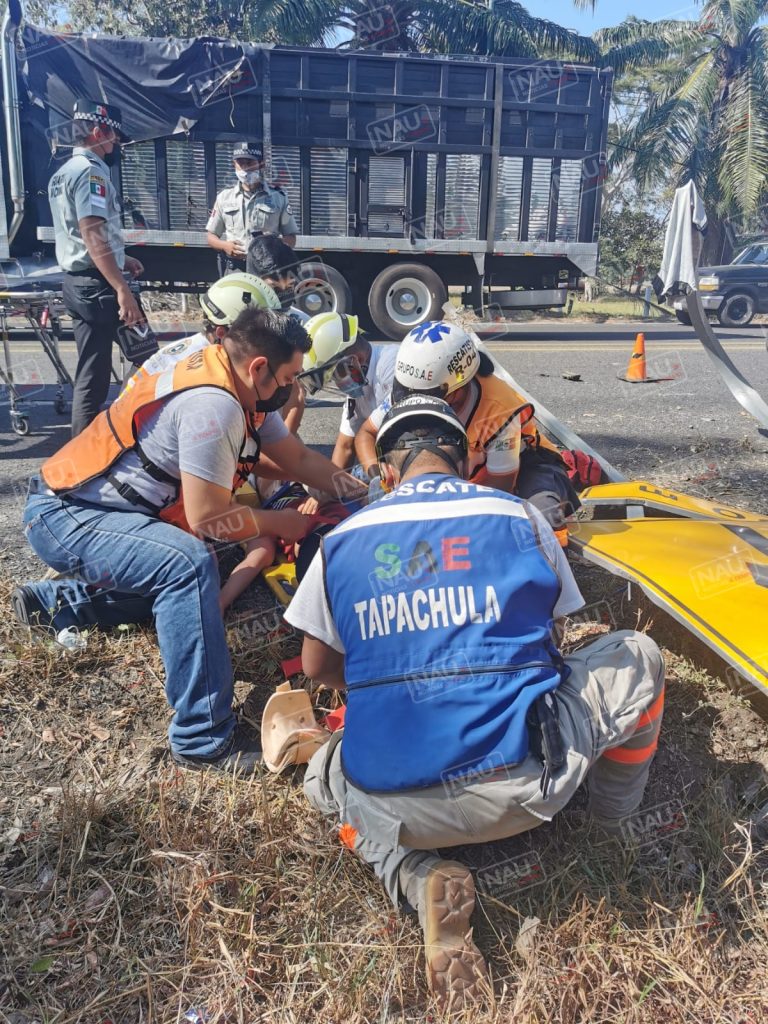 Los lesionados fueron trasladados al hospital general de Tapachula, mientras tanto, elementos de la guardia nacional sector caminos arribaron al lugar, quiénes iniciaron las investigaciones correspondientes y pusieron a disposición el vehículo; en las próximas horas se determinará la situación jurídica del conductor.