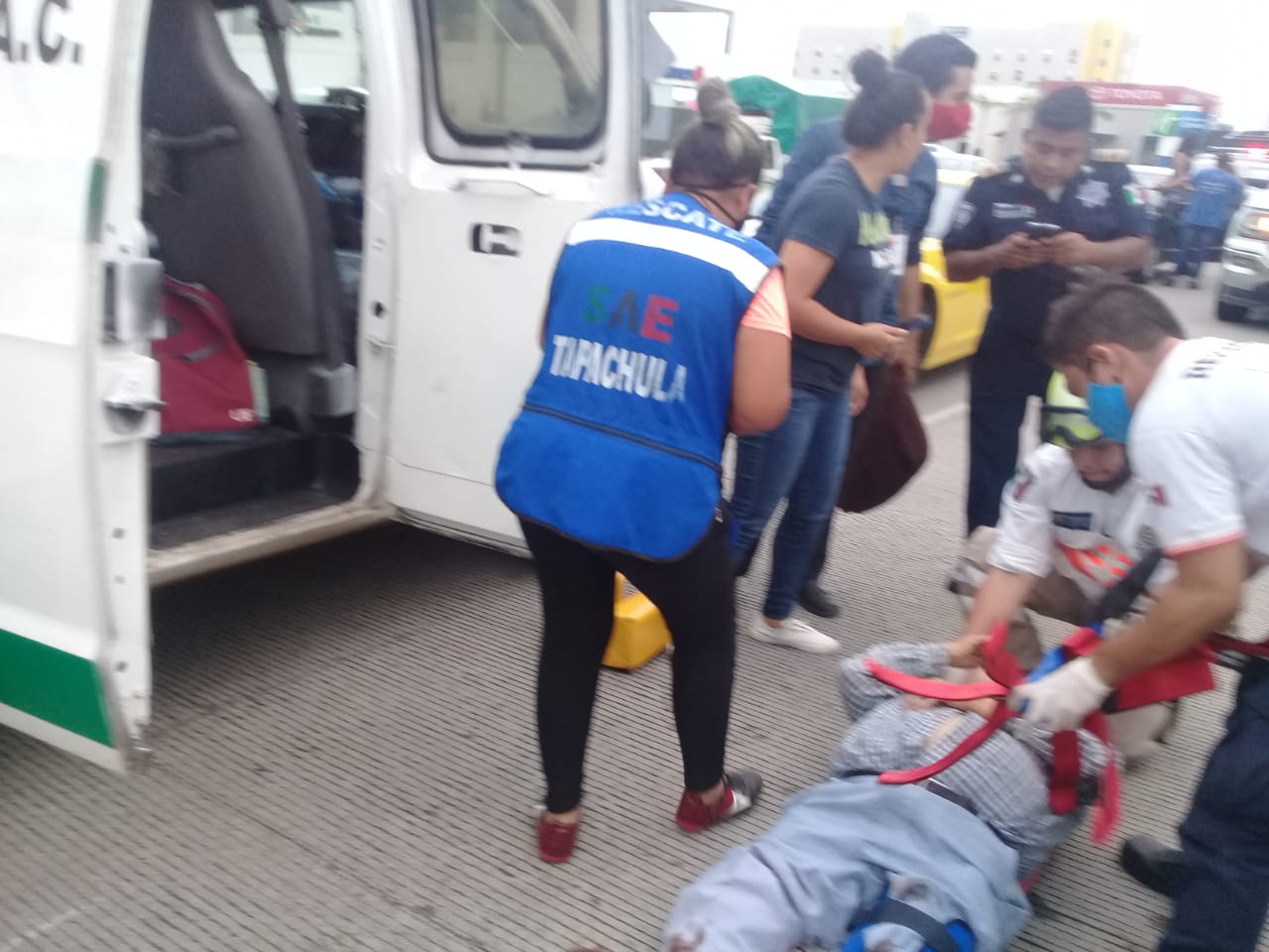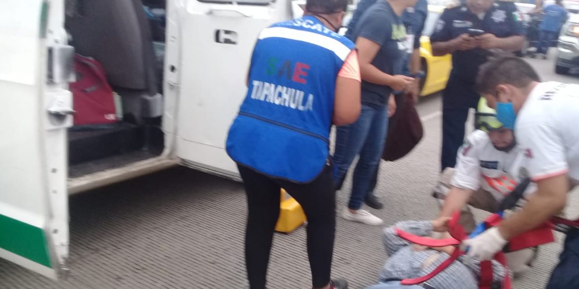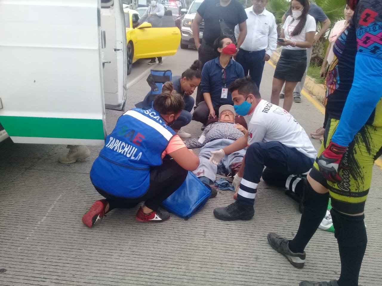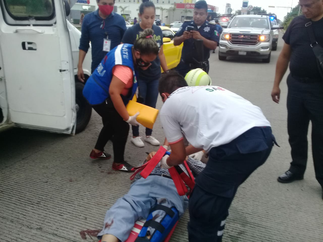 Tapachula. Chiapas. Dos personas de gravedad y daños materiales dejo como saldo un accidente entre una motocicleta y un peatón, los hechos se dieron sobre la 4a avenida sur prolongación, como referencia frente a plaza galerías.