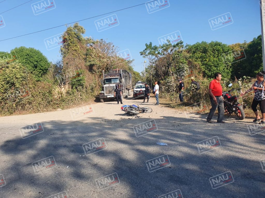 El conductor de la motocicleta explicó a las autoridades que el conductor del tractocamión le hizo corte de circulación, por lo que no pudo frenar y chocó.