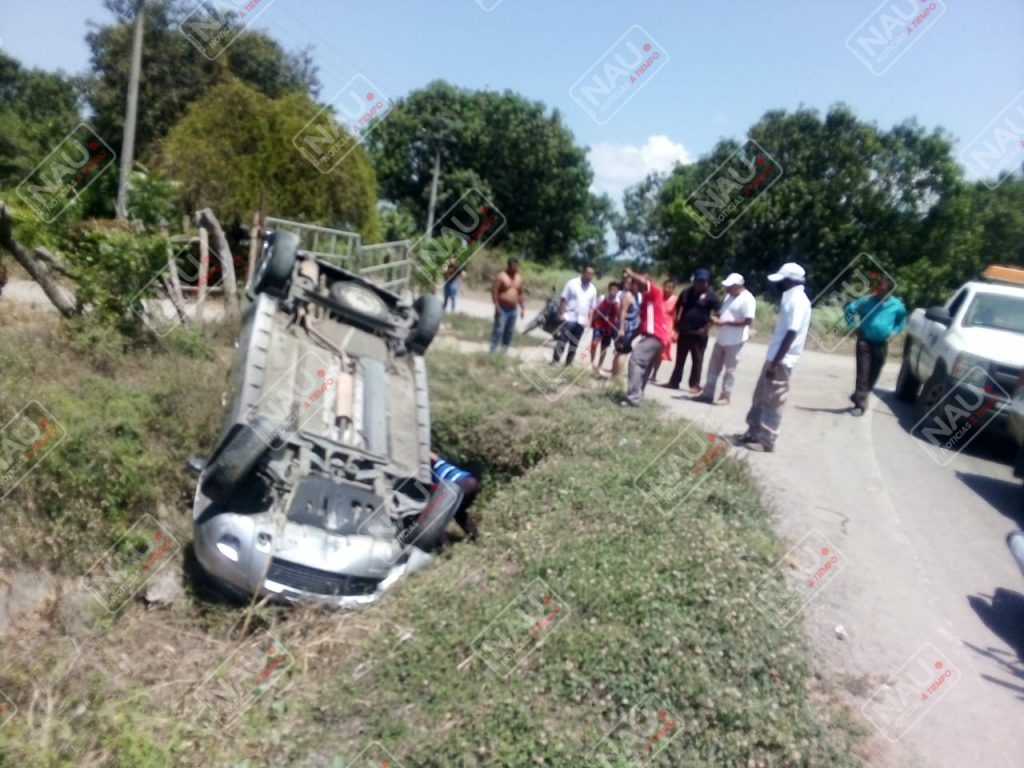 A la altura del Ejido Adolfo Ruiz Cortines, perdió el control del vehículo y terminó volcado fuera de la cinta asfáltica, al lugar arribó personal de protección civil y policía municipal, quienes les brindaron los primeros auxilios.