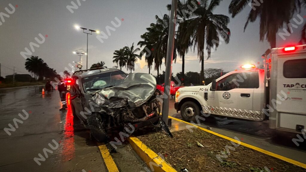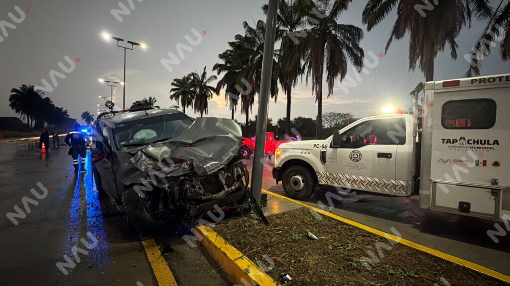 Tapachula, Chiapas; 21 de marzo de 2026.– Un accidente de tránsito se registró la tarde de este sábado sobre el libramiento Sur Poniente, a la altura previa al camino viejo a Mazatán, donde dos camionetas colisionaron en sentidos opuestos.