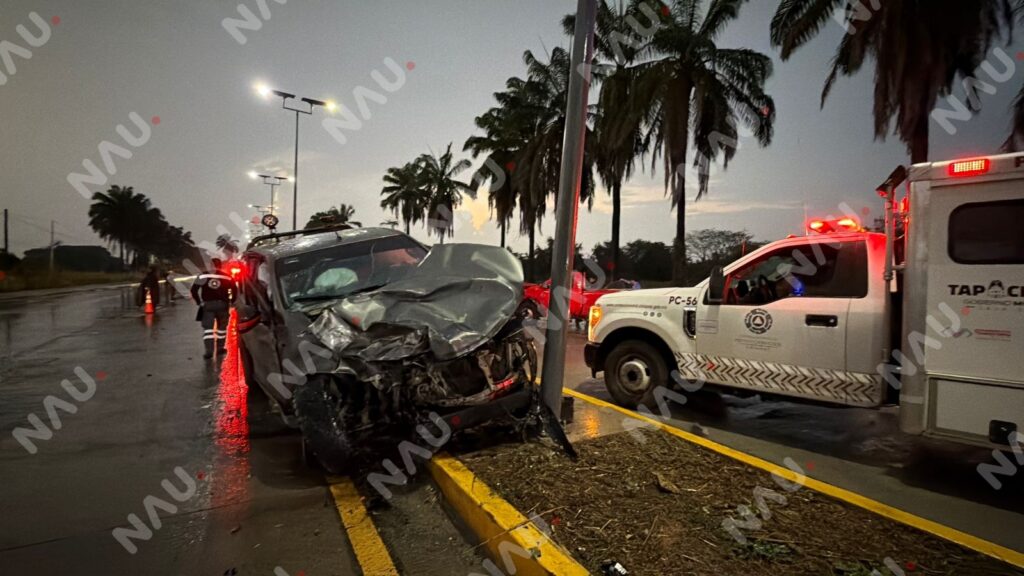 De acuerdo con los datos recabados en el lugar, la camioneta gris se desplazaba de poniente a oriente; sin embargo, al avanzar aproximadamente 100 metros después del entronque al camino viejo a Mazatán, el conductor perdió el control del vehículo, presuntamente por las condiciones del pavimento mojado.