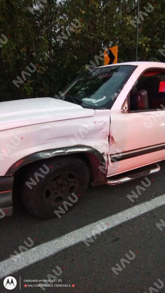 Tapachula, Chiapas.– La tarde de este lunes 6 de abril de 2026 se registró un accidente vehicular sobre la carretera Tapachula–Tuxtla Chico, a la altura de las conocidas curvas de la “Calavera”, cerca del puente Cahoacán, que dejó como saldo dos menores de edad lesionados.