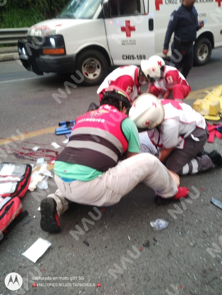 Al lugar acudieron paramédicos del grupo SAMP Halcones Rojos Tapachula, quienes brindaron atención prehospitalaria a los jóvenes. Posteriormente, personal de la Cruz Roja Mexicana, a bordo de la unidad CHIS-189, realizó el traslado de ambos a un hospital para su valoración médica.
