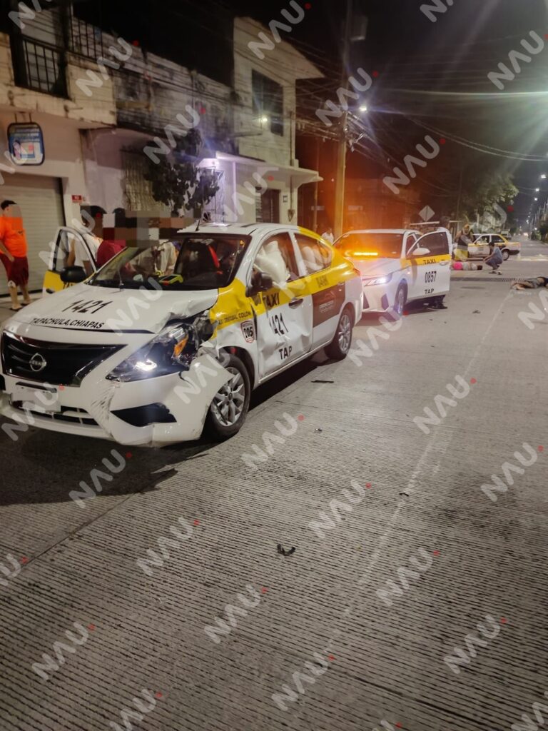 Asimismo, personal del Club de Auxilio y Rescate de Chiapas (CARCH 04) Tapachula atendió al conductor del taxi, quien presentó policontusiones derivadas de la activación de las bolsas de aire y del fuerte golpe recibido en la puerta del costado izquierdo de la unidad.