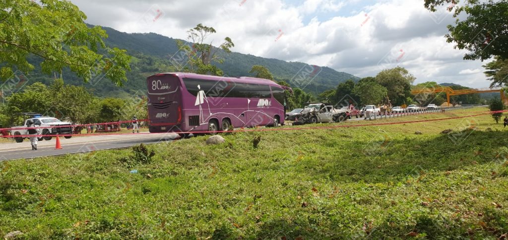 En el momento que intentó rebasar un vehículo a la altura del kilómetro 172 de la colonia Hermenegildo Galeana, invade carril contrario y choca de frente contra el autobús ADOGL con placas de circulación 09 HA 8R del servicio público, que se dirijía a Tapachula, propiedad de la empresa Cristóbal Colón.