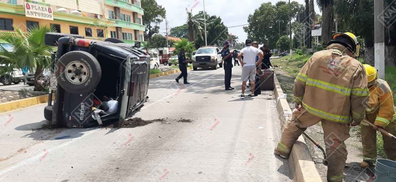 Tapachula, Chiapas. Con lesiones en diferentes partes del cuerpo, resultaron dos personas de aproximadamente 65 y 58 años de edad, luego de sufrir un aparatoso accidente en el vehículo en que viajaban, sobre la 4a avenida sur prolongación, como referencia a la altura de una conocida empresa de cartones.