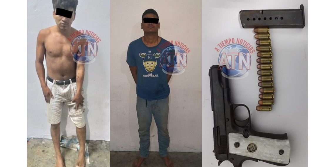 MAZATAN, CHIAPAS. Dos sujetos que portaban arma de fuego, intentaron asesinar a una mujer, quien pidió la intervención de la Policía Estatal preventiva, quienes lograron la detención de las dos personas, un vehículo y una pistola con cartuchos útiles.