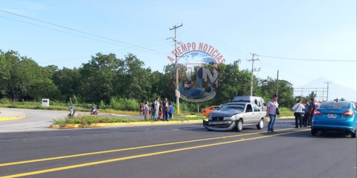 Tapachula, Chiapas. Sólo daños materiales dejó como saldo un accidente entre una Combi de ruta foránea y un automóvil particular, esto sobre la carretera Tapachula – Puerto Madero, como referencia frente al hospital Manuel Velasco Suárez.