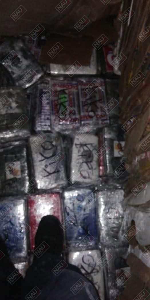 Al revisar el tráiler en un doble fondo, se aseguró mil 285 paquetes de forma rectangular, cubiertos de plástico de diversos colores, en su interior polvo blanco con las características de la cocaína, con un peso bruto aproximado de mil doscientos ochenta y cinco kilogramos.
