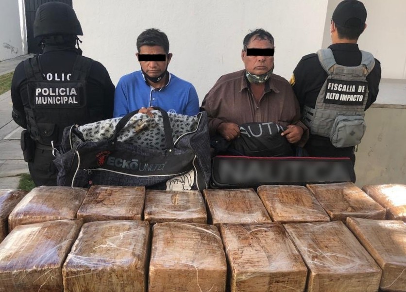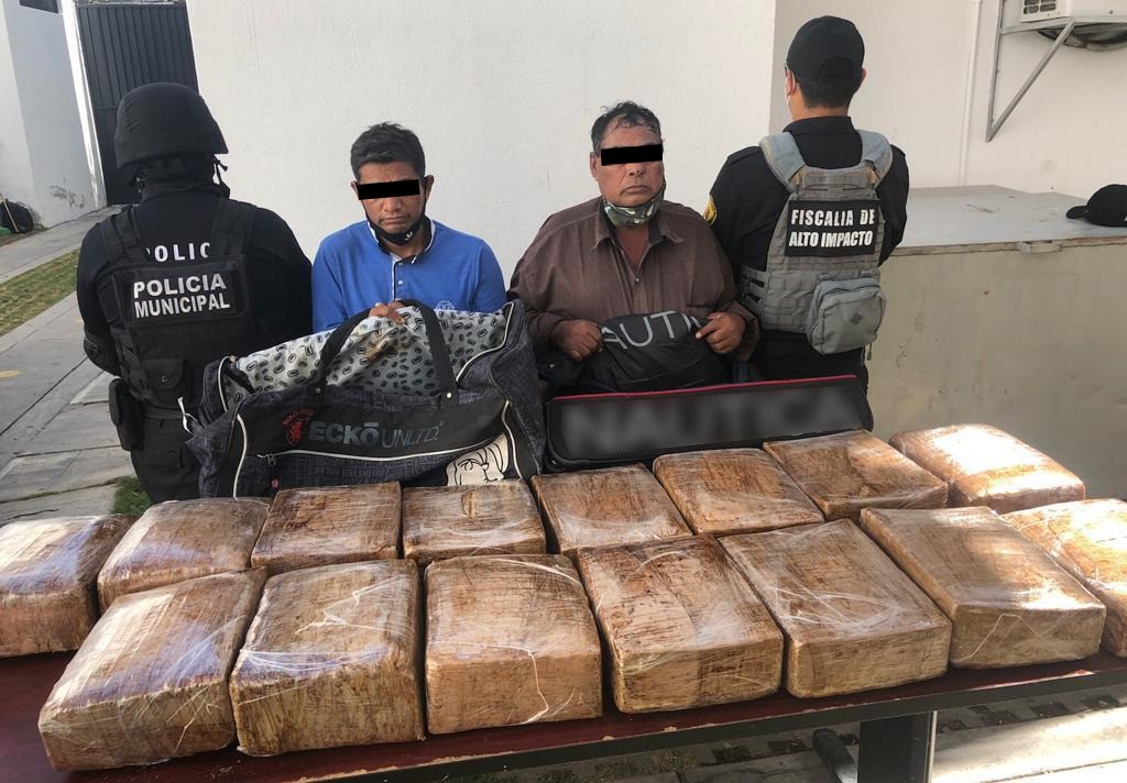 Al realizarles una inspección de persona, de acuerdo al artículo 268 del Código Nacional de Procedimientos Penales, se localizó en dos maletas 15 paquetes con marihuana, con un peso total aproximado de 82 kilogramos. Por ello se aplicó control de detención a Luis “N” y Octavio “N”.